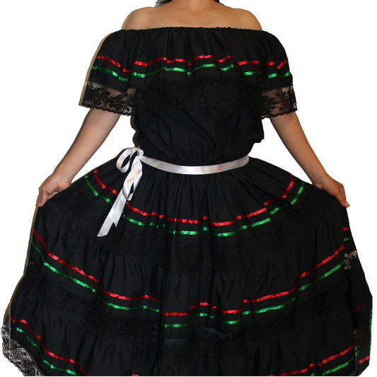 BLACK PEASANT MEXICAN LACE DRESS OFF SHOULDER CINCO DE MAYO COSTUME ONE SIZE