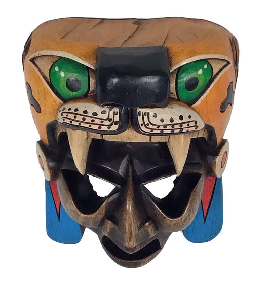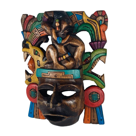 Colorful Hand Carved Wooden Mask Mexican Mayan Mask