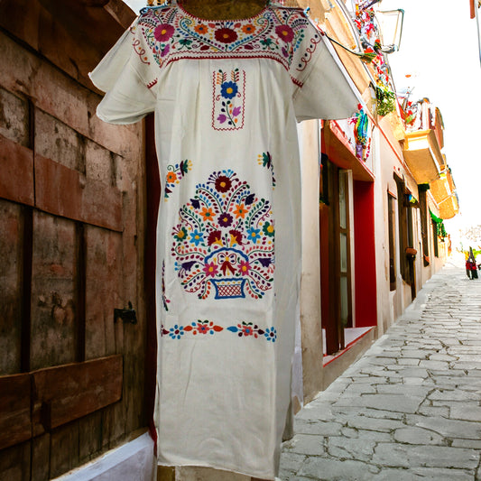 Manta 100% Cotton Hippie Boho Tunic Embroidered Mexican Dress Vintage Style