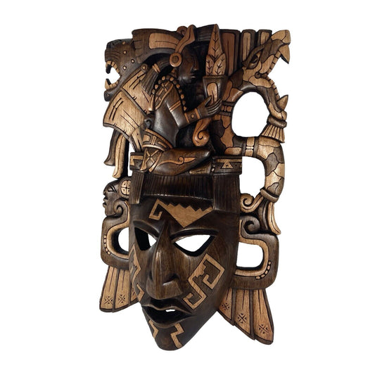 Hand Carved Wooden Mask Mexican Mayan Mask 15.5" Height