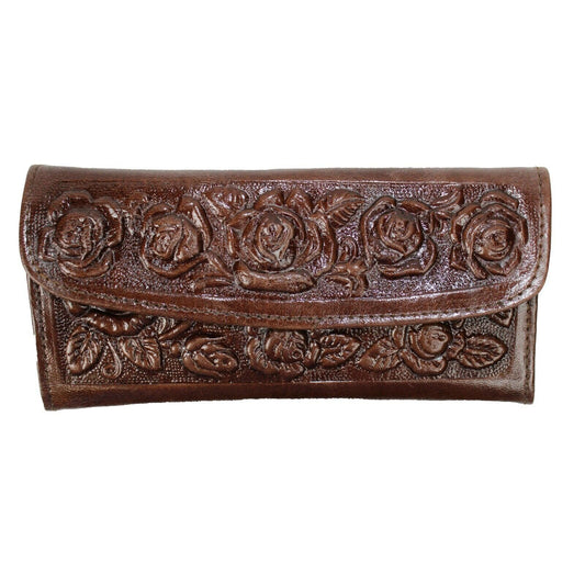Genuine Women's Leather Handtooled Wallet Western Cowgirl Tri-Fold Wallet Brown