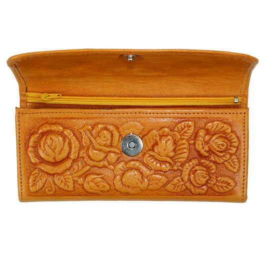 Genuine Women's Leather Handtooled Wallet Western Cowgirl Tri-Fold Wallet Honey