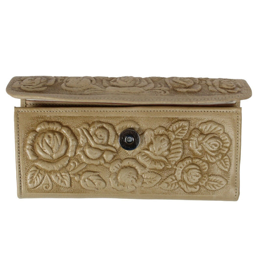 Genuine Women's Leather Handtooled Wallet Western Cowgirl Tri-Fold Wallet Beige