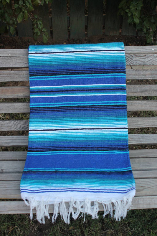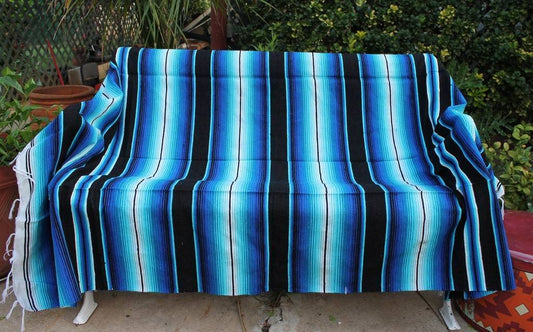 Blue Sarape Serape Mexican Blanket Saltillo Southwestern 5' x 7' Yoga Throw