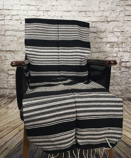 Black Serape Mexican Blanket Saltillo Southwestern 5' x 7' Yoga Throw