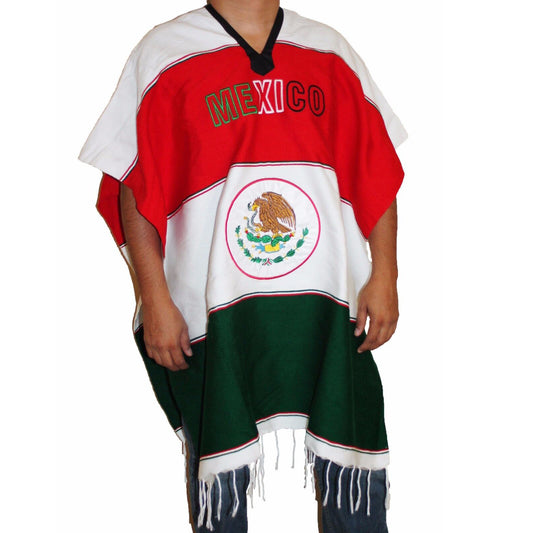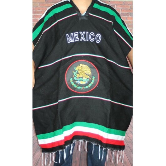 Warm Mexican Flag Mexican Poncho Gaban Heavy Blanket Cape Ruana One Size