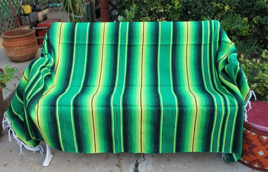 Green Sarape Serape Mexican Blanket Saltillo Southwestern 5' x 7' Yoga Throw